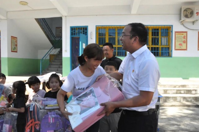 本網(wǎng)訊 9月3日,在新學(xué)期來臨之際,炎黃科技園聯(lián)合黨支部書 記、執(zhí)行總經(jīng)理?xiàng)钫軒ьI(lǐng)聯(lián)合黨支部的黨員代表到洛陽市嵩縣大章鎮(zhèn)趙樓村小學(xué)走訪慰問,為老師和孩子們送去開學(xué)“禮包”。