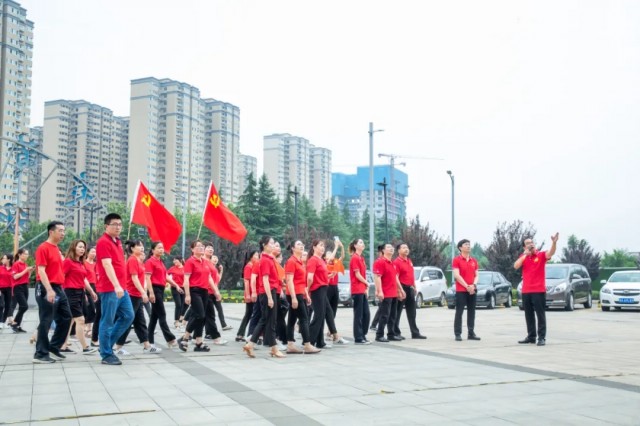 觀摩交流會結(jié)束后,參加活動的全體黨員齊聚炎黃科技園親水平臺,參加洛龍高新區(qū)“歌聲嘹亮 禮贊山河 政企聯(lián)唱 齊頌百年”獻禮建黨百年華誕主題活動合拍視頻的錄制。