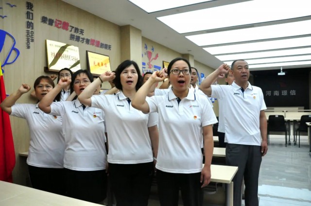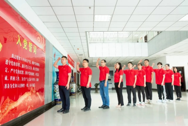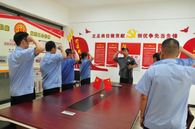 在董小輝的帶領(lǐng)下,全體黨員莊嚴(yán)舉起右手,重溫入黨誓詞,鏗鏘有力的聲音響徹云霄,心中的理想和信念更加堅定。