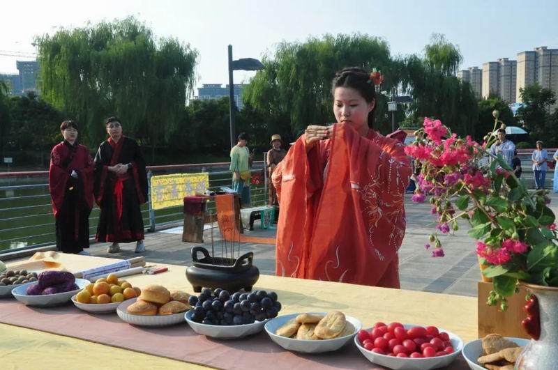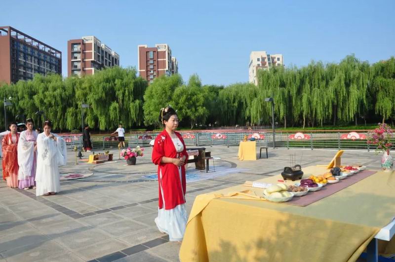 今天是8月4日,農(nóng)歷七月初七乞巧節(jié)。下午17時(shí)許,中國(guó)華僑國(guó)際文化交流基地炎黃科技園的湖心平臺(tái)上格外熱鬧,一場(chǎng)別開(kāi)生面的乞巧節(jié)傳統(tǒng)文化大集活動(dòng)正在這里舉行。