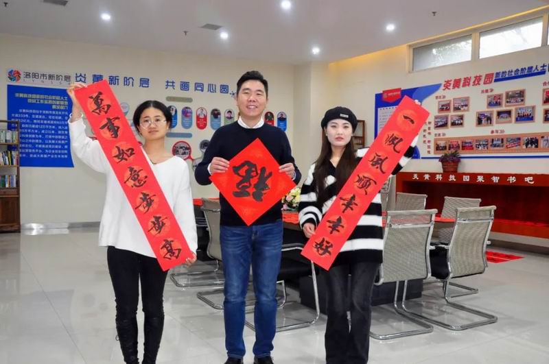 “感謝園區(qū)給我們送福氣,聞著墨香就感覺新年越來越近?!眻@區(qū)一位企業(yè)家說。13日下午開始,炎黃科技園工作人員帶著寫好的“?!弊趾痛郝?lián)陸續(xù)走訪入園企業(yè),將一張張喜氣洋洋的“?!弊?,一幅幅寓意吉祥的春聯(lián),送到企業(yè)負(fù)責(zé)人手中,讓大家提前感受到濃濃的年味。